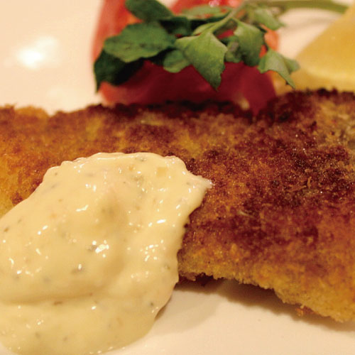 ③両面を焼き上げ、器に盛り付ける④残りのバターをそのままフライパンに入れ、レモン果汁、砂糖、水を加え、焦げ付かないように煮詰め、塩で味を調えてソースにする