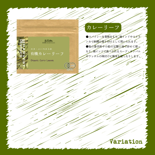 スリランカの野生のジャングルで有機栽培された香り高いカレーリーフです。