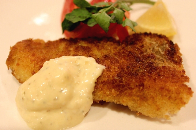 ③両面を焼き上げ、器に盛り付ける④残りのバターをそのままフライパンに入れ、レモン果汁、砂糖、水を加え、焦げ付かないように煮詰め、塩で味を調えてソースにする