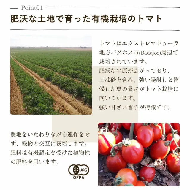 スペインの太陽をたっぷり浴びた、バダホス産の完熟トマトの甘さに、絶妙なブレンドのスパイス・ハーブを加え、奥深い味わいに仕上げました。